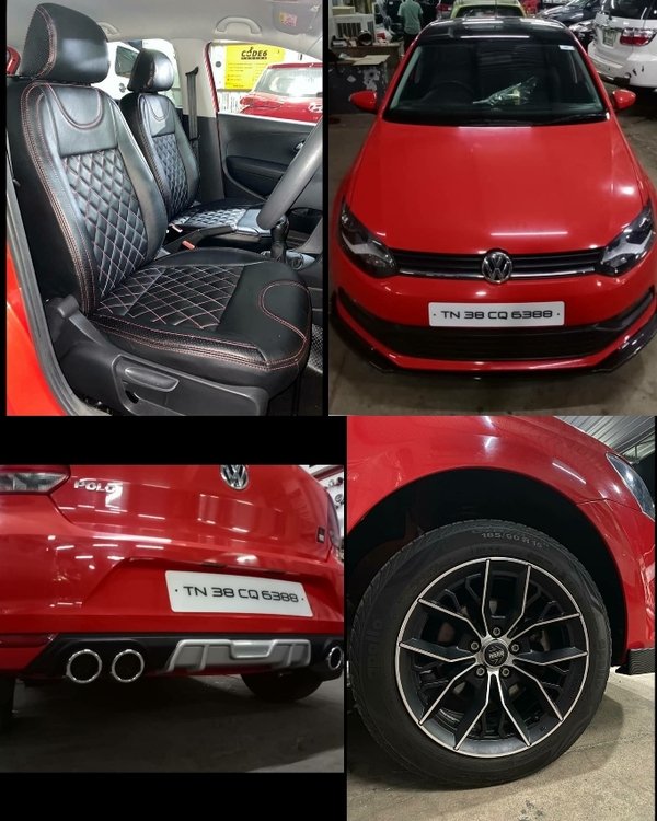 volkswagen polo #American leather seat cover fitted in polo #MOMO alloy wheel fitted #Diffuser installed in Polo at Coimbatore #Front skirts installed in Volkswagen Polo #Skirts #Seat cover #Alloy wheel #Diffuser #Coimbatore